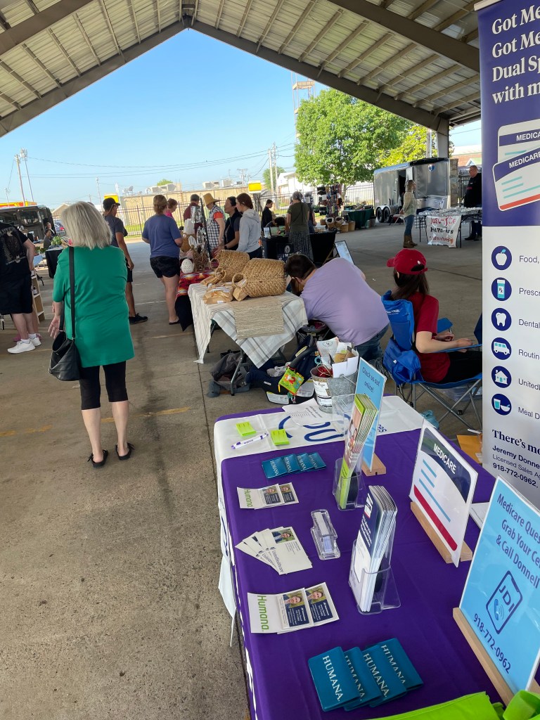 We didn’t let the rain stop us from helping educate seniors on Medicare and food benefits at the Muskogee Farmers Market today!