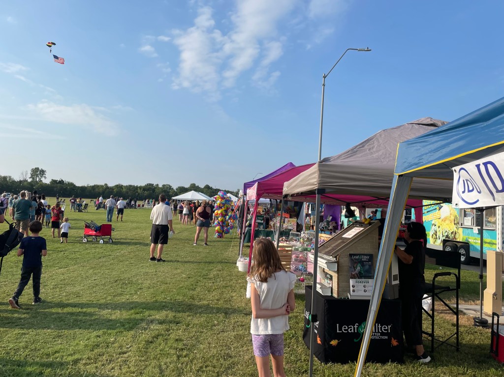 They have hot air balloons, skydivers with the American flag, good music, food, and fireworks at the end. Plus a raffle, spin the wheel, cast your vote and giveaways at our booth.